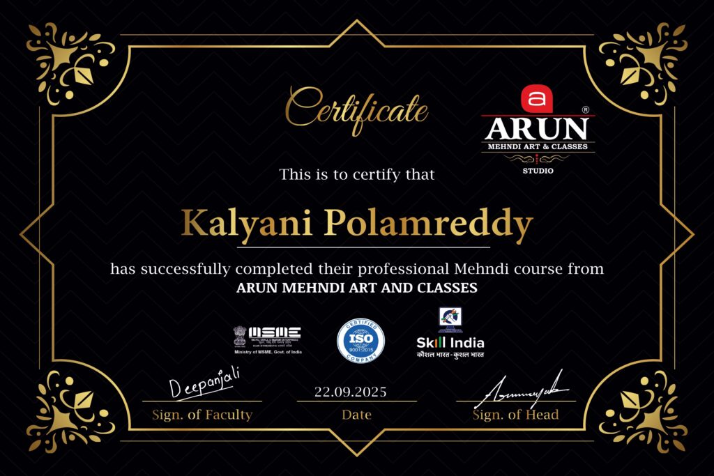 Don’t let others master the art before you do. Arun Mehndi Art and classes today and start creating designs that impress.